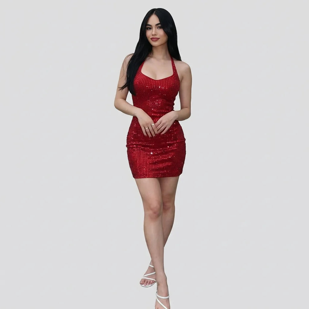 Con un escote halter elegante y un corte mini ultra femenino, este vestido es ideal para fiestas, celebraciones, antros o noches especiales donde quieres verte poderosa, sofisticada y completamente inolvidable. Una pieza statement con esencia Glossy Maison: lujo moderno, sensualidad y actitud.